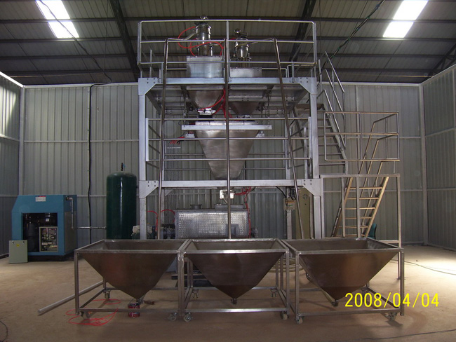 (5)因為部分物料含有結晶水,易吸潮,高溫易液化;本生產(chǎn)線(xiàn)設備配料、混料速度快,生產(chǎn)過(guò)程物料與空氣接觸時(shí)間少,不會(huì )吸水返潮。